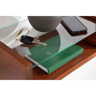 - QUALITY MATERIAL: The Holt shelf is crafted with solid wood and a glass top, giving it a sophisticated look and resilient quality