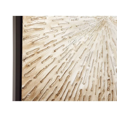 - •This elegant contemporary wall art features an acrylic painting in light gold, dark gold, soft beige, creme, white, and metallic silver finishes, with a black frame
