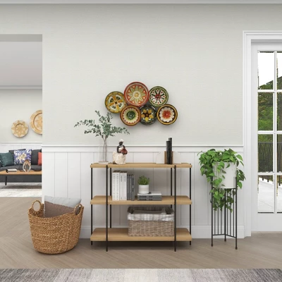 Make an instance home refresh with this metal wall plate decor for a vibrant appeal. This item ships in 1 carton. Can be hung horizontally using the keyholes on the back; nails and screws not included. Suitable for indoor use only. This item ships fully assembled in one piece. This is a single black colored wall sculptures. Rustic style.