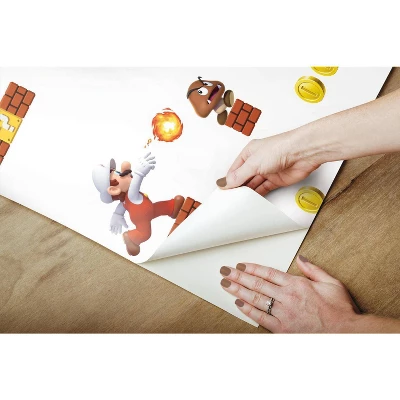 Customize any space or decor with Mario Peel and Stick Wallpaper by RoomMates. Offering a fresh new alternative to decorating with very little commitment, use Peel and Stick Wallpaper for more than just walls. Great for upgrading walls, furniture, DIY crafts, de cor and more, the decorating possibilities are endless. A fast, fun and affordable decorating tool, install Peel and Stick Wallpaper in minutes. Just peel and stick! Plus, remove in full strips in just seconds keeping walls 100% safe. Reusable and extremely versatile, shop Peel and Stick Wallpaper now!
