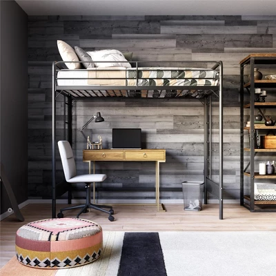Your kiddo seems to be outgrowing everything these days, including your space. An easy fix, give your child an area that serves triple duty. The RealRooms Colten Loft Bed provides a raised sleeping spot that offers both comfort and privacy with a bottom nook that can be used for either study, gaming or storage, all while expanding the look and feel of a smaller sized bedroom. Engineered with a rugged metal frame, this is one sturdy piece of furniture that’ll hold its own against your kid’s superhuman energy. To ensure ultimate safety, full length guardrails wrap around the bed to prevent accidental falls and a metal slat bed base keeps the mattress completely secured (mattress not included). Plus with an integrated ladder on both sides of the bed, your child can easily climb up or down from either direction. Create a productive homework station below the bed with the addition of the equally attractive and grownup RealRooms Atwood Desk and Olten Chair (items sold separately). Offered in multiple color and size options. One problemo solved!