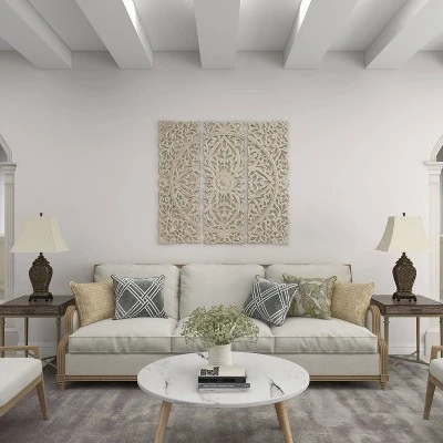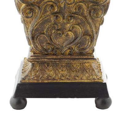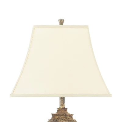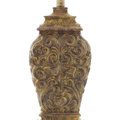 - This decorative table lamp is crafted of solid and textured polystone