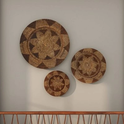 Set Of 3 Rattan Plate Woven Basket Wall Decors – Olivia & May